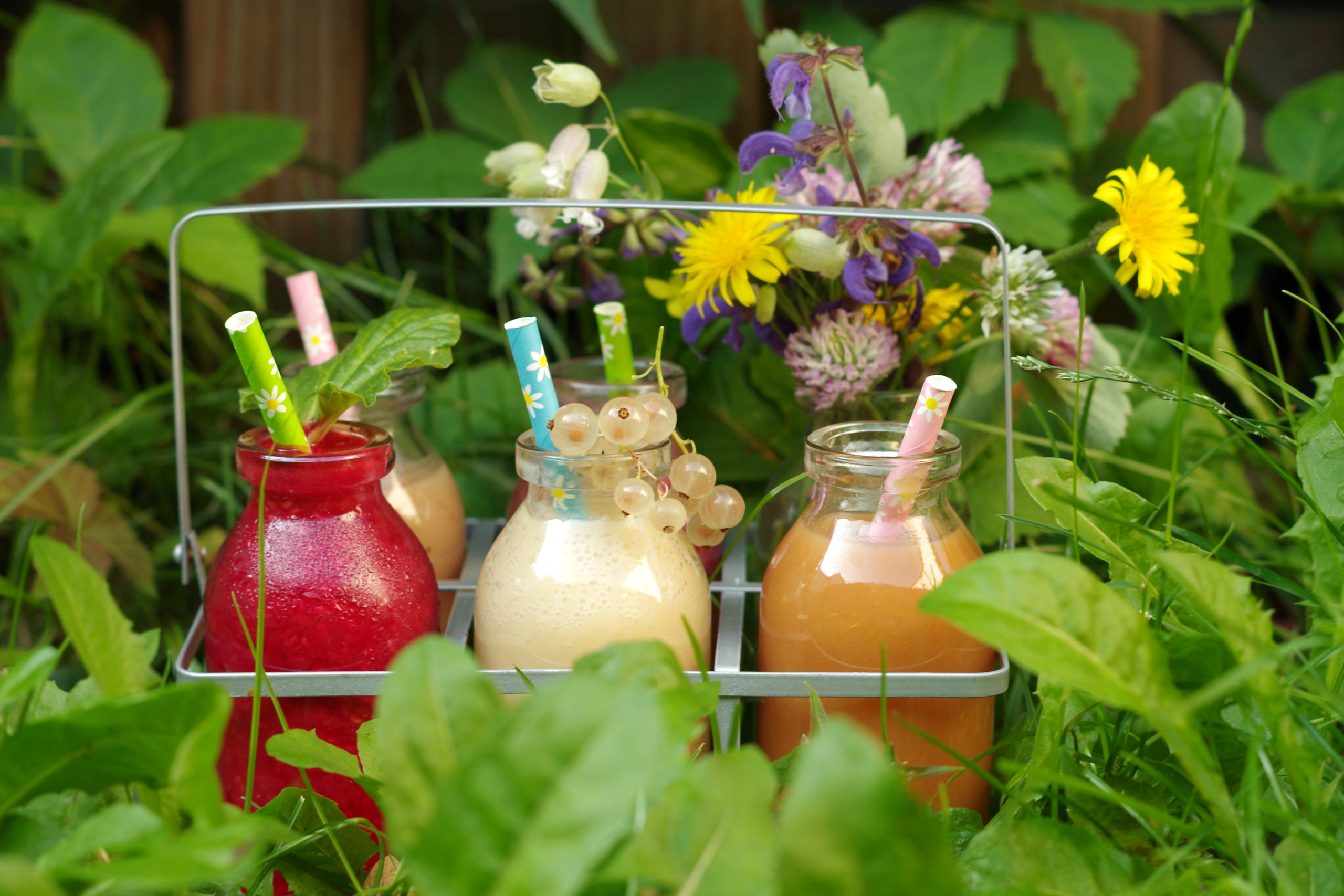 Wohl dem, der seinen eigenen Garten hat, denn dann ist der Smoothie besonders frisch und preiswert. Wir benötigen nur einen Mixer oder Pürierstab und Gemüse und Obst aus dem Garten. Das Wort Smoothie kommt aus dem Amerikanischen und bedeutet glatt, geschmeidig. Wertvolle Inhaltsstoffe sind ätherische Öle, Vitamine, Ballaststoffe, Carotine, Phytosterine, Polyphenole und Mineralstoffe. Nehmen Sie die Blätter von Kräutern, Gemüse sowie Obst und mixen diese. Probieren Sie ruhig mal ein eigenes Rezept aus, frei nach dem Trend „Mix & Match“.